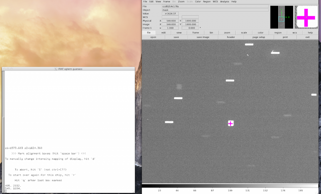 Note: The software used at the telescope for aligning LDSS3 masks requires the existence of two special files per mask (referred to in this cookbook as ".align" and ".sub" files). There are two different ways to generate these files. This cookbook describes a method which uses only IRAF. The second method, which uses the COSMOS data reduction package is described elsewhere.